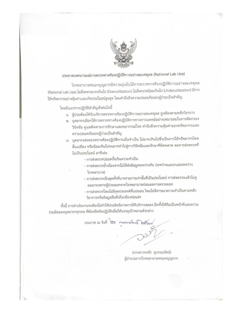 • ประกาศเจตนารมณ์การตรวจทางห้องปฏิบัติการ 7 มกราคม 2026